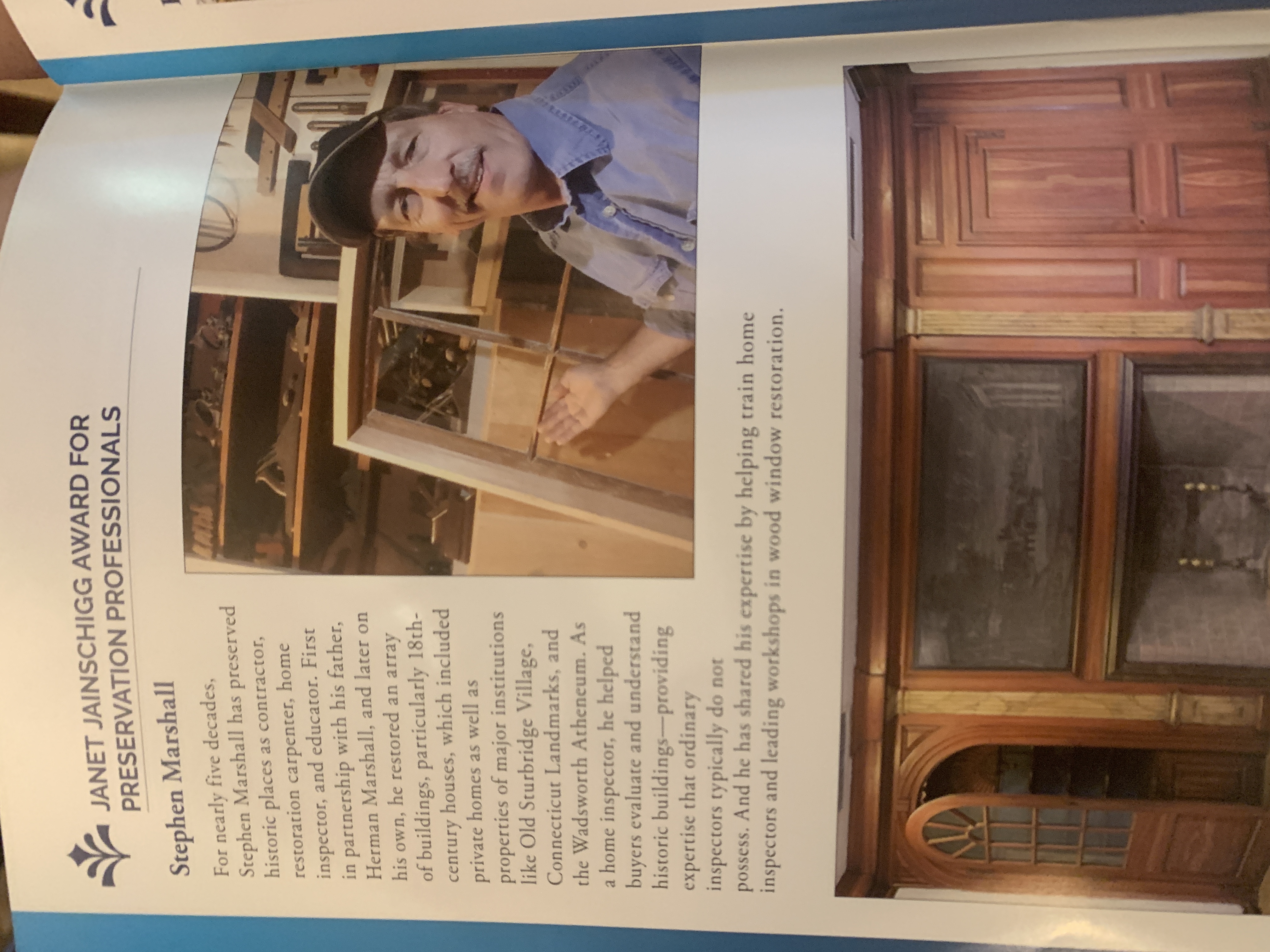 In 2024, Steve was awarded the Janet Jainschigg Award for Preservation Professionals, from Preservation Connecticut. They present this award annually, to honor professionals for their outstanding commitment to historic preservation and community character.
